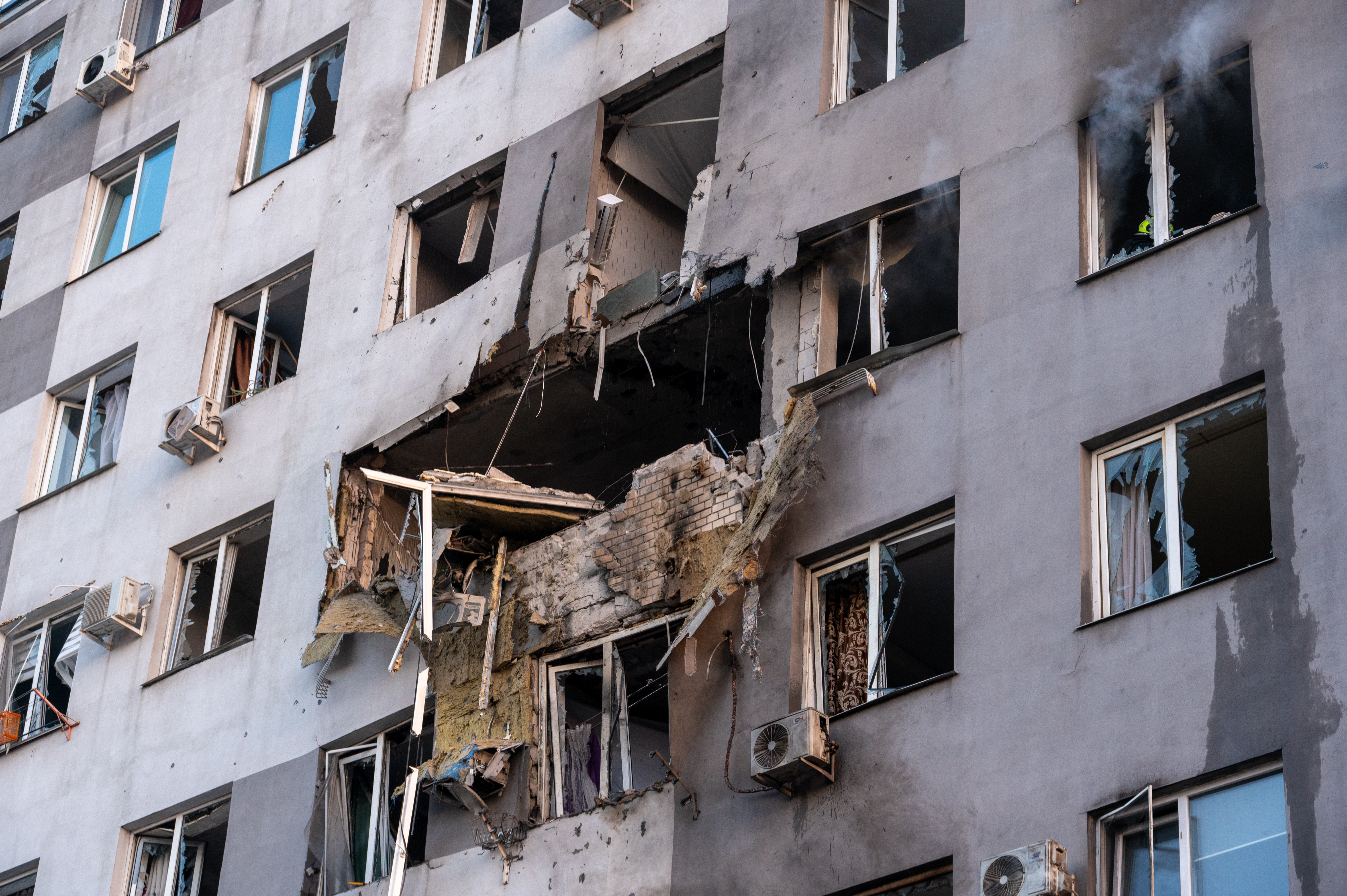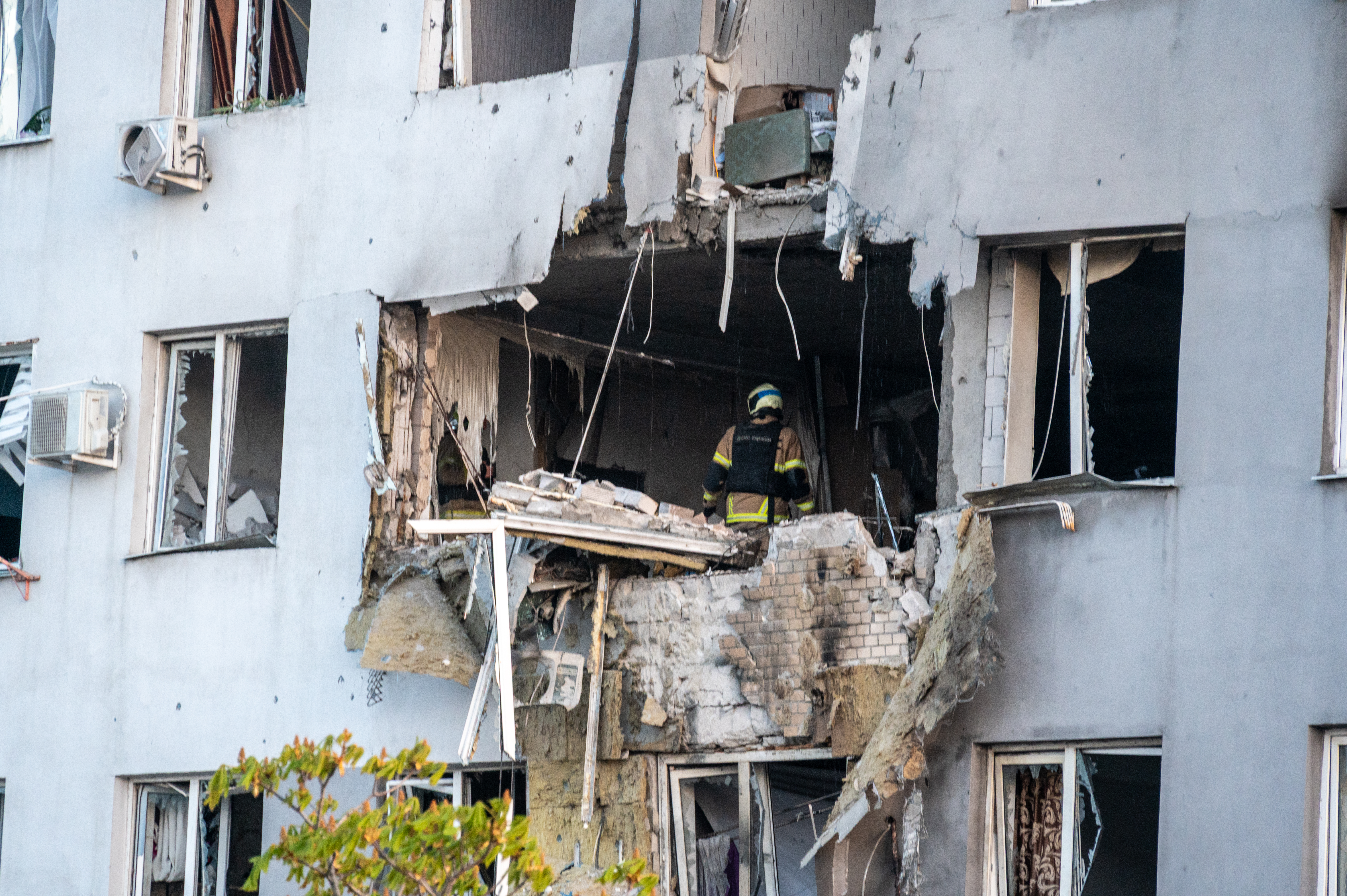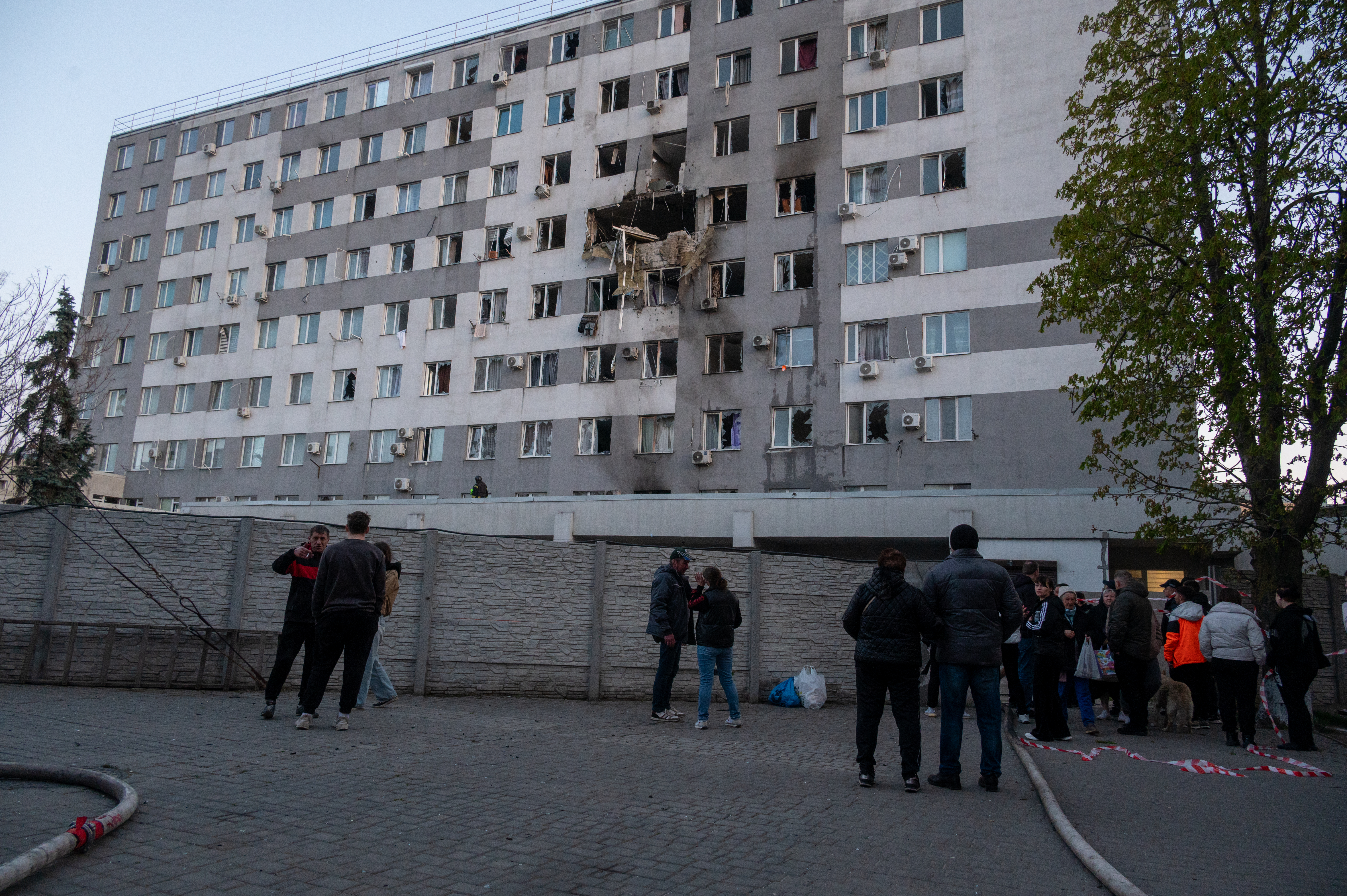 Aftermath of a drone strike on a residential building in Odesa, April 15, 2026