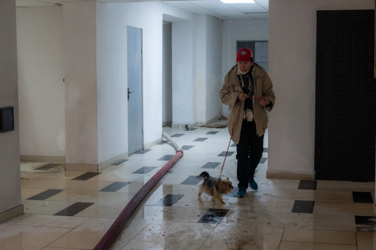 A resident of a building damaged in a russian drone strike, Odesa, April 15, 2026