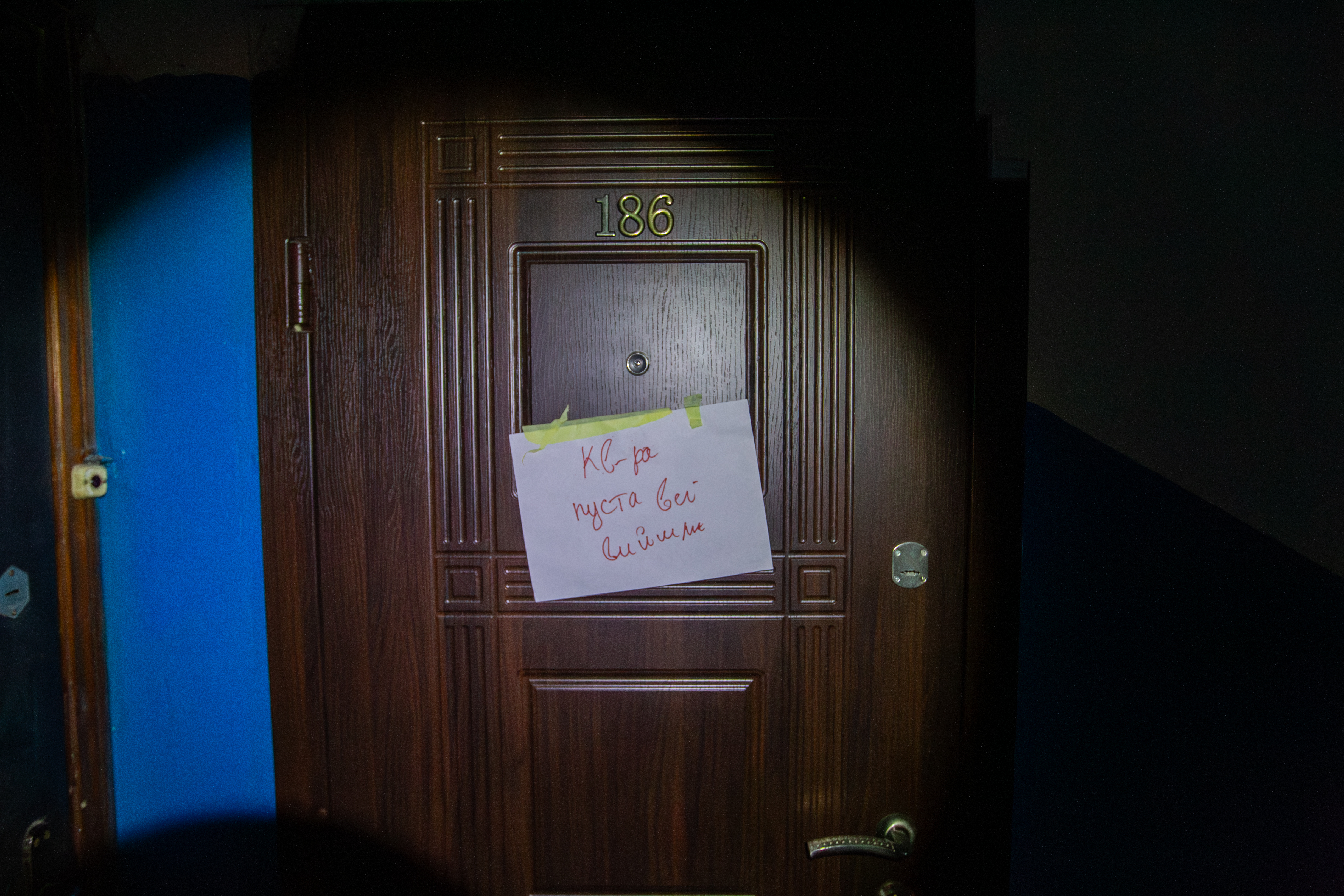 A sign on the door of an apartment reads: “The flat is empty, everyone has left.” Kyiv, November 29, 2025