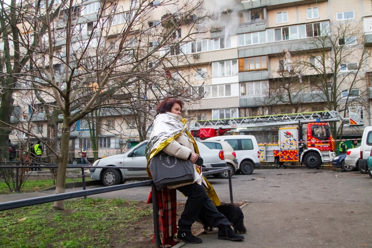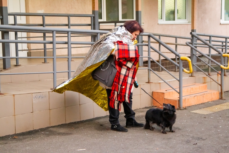A local resident at the site of a russian strike in Kyiv’s Sviatoshyn district, November 14, 2025