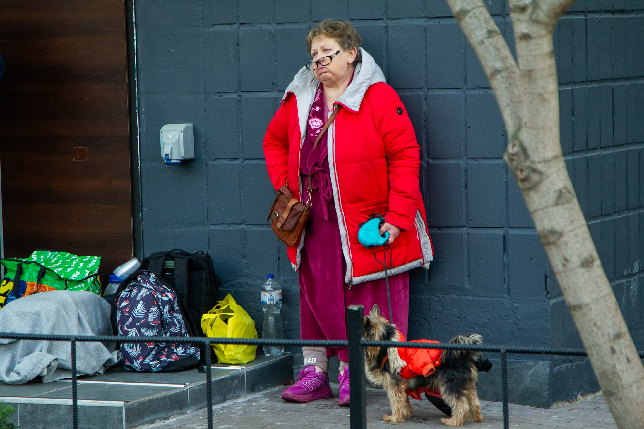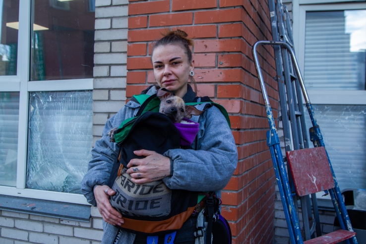 A local resident at the site of a russian attack in Kyiv’s Desnianskyi district, November 14, 2025