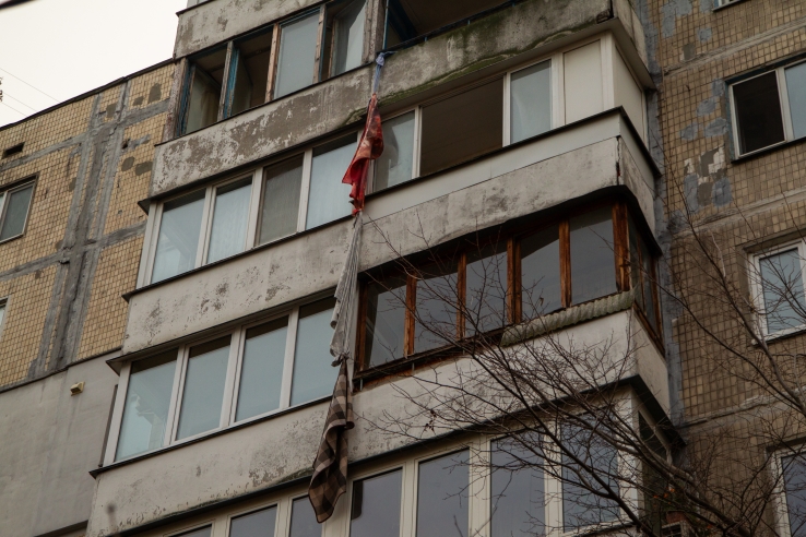 russian shelling leaves extensive damage to a multi-story residential building in Kyiv’s Dnipro district, November 25, 2025