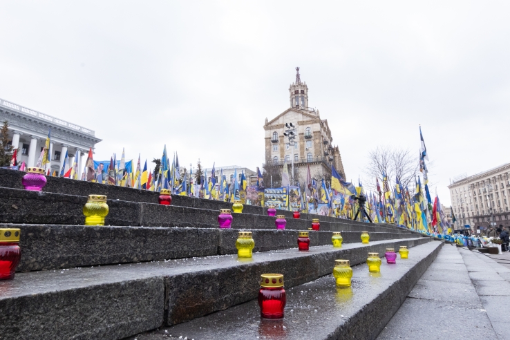 Maidan Nezalezhnosti in Kyiv on the fourth anniversary of Russia’s full-scale war against Ukraine. February 24, 2026