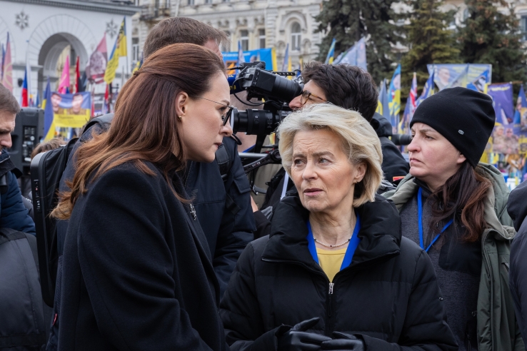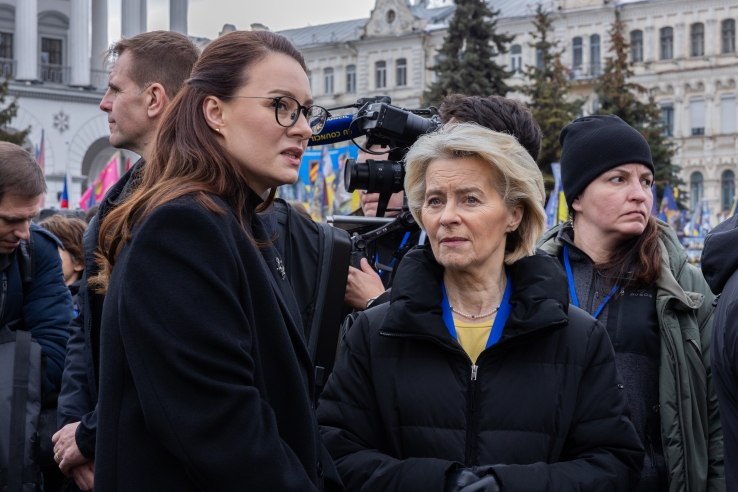 Prime Minister of Ukraine Yuliia Svyrydenko and President of the European Commission Ursula von der Leyen at Maidan Nezalezhnosti in Kyiv. February 24, 2026