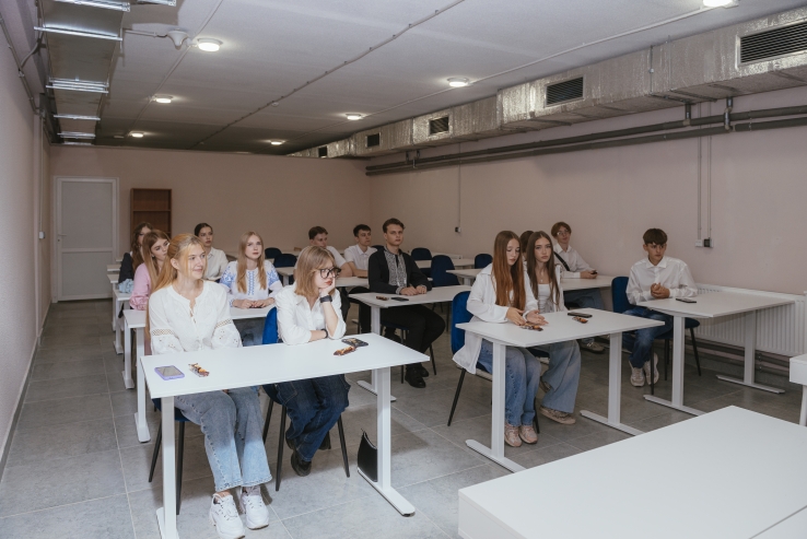 Students inside a school bunker in Balakliia, Kharkiv region, equipped by the savED Foundation, 2025