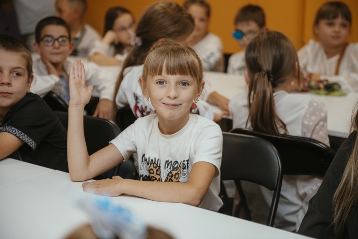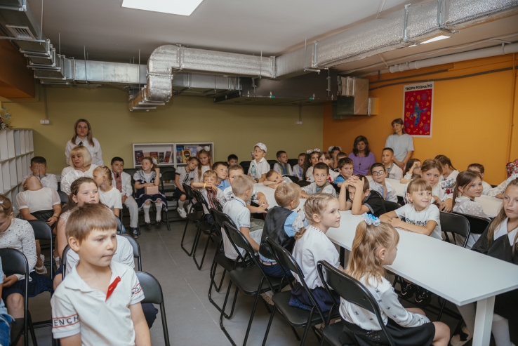 First day of school ceremony at a school bunker in Balakliia, Kharkiv region, renovated by the savED Foundation, 2025