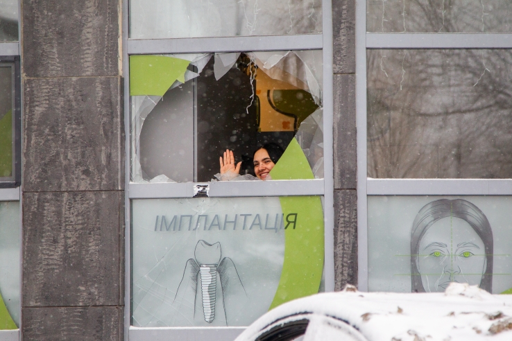 A young girl inside a shattered dental office following russian strikes on Kyiv’s Darnytskyi district, January 9, 2026