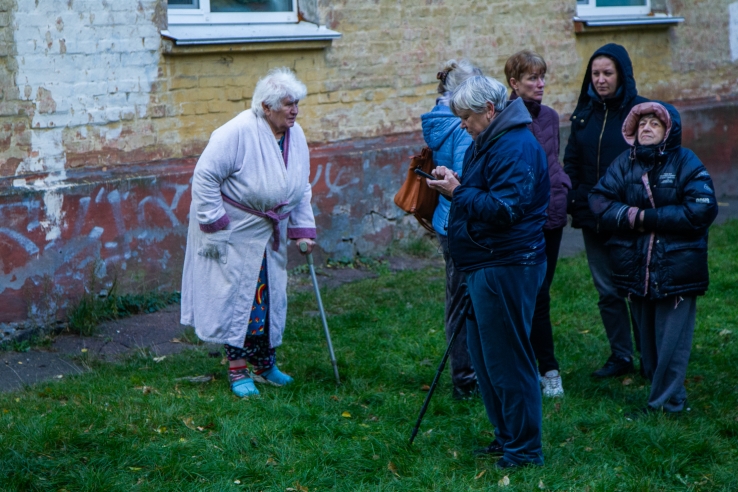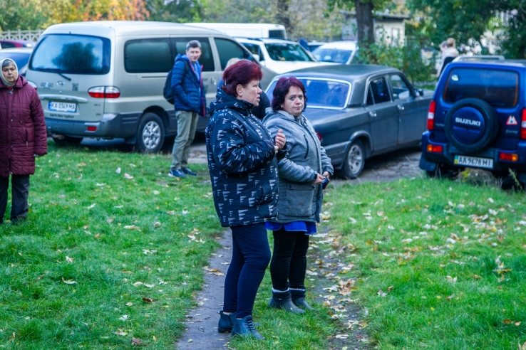 Residents near the destroyed apartment building, Kyiv, October 22, 2025