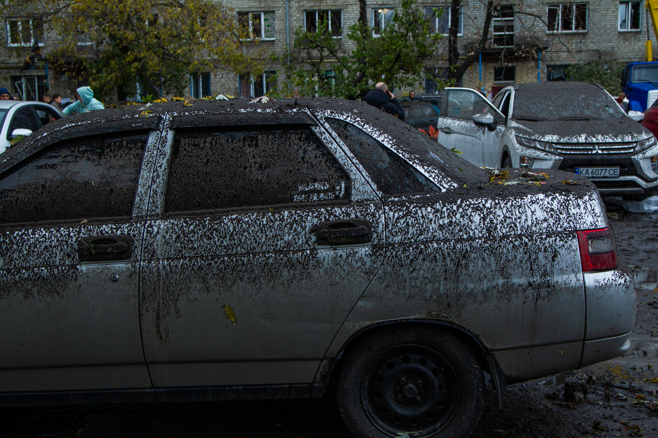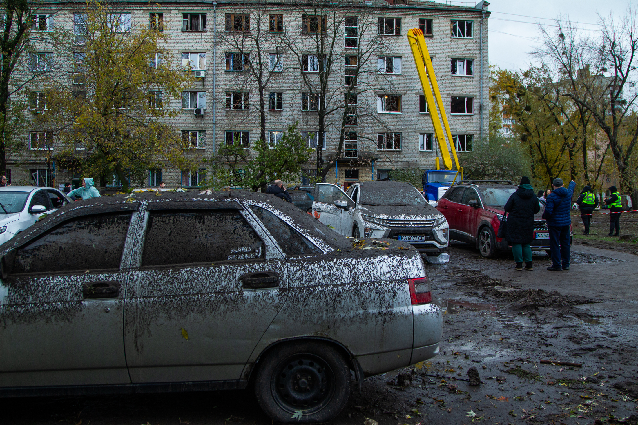 Cars at the scene of a russian strike in Kyiv, October 25, 2025
