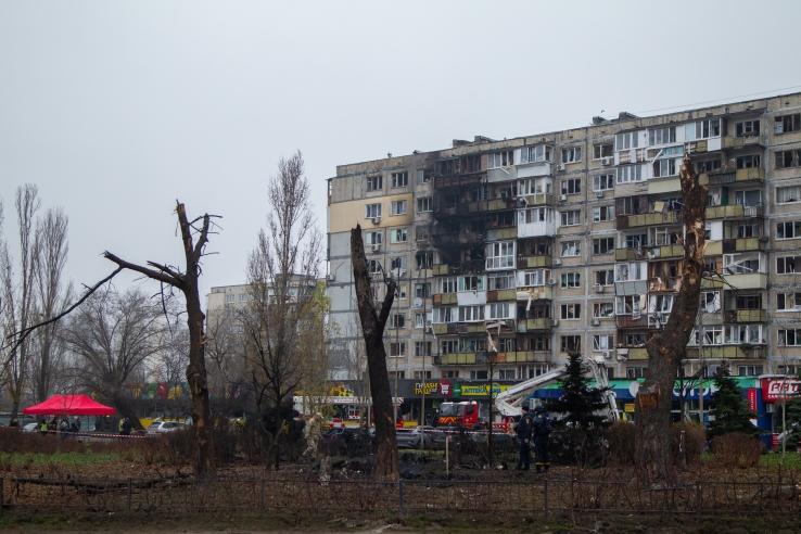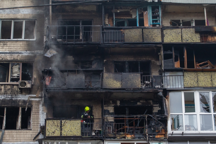 Destroyed residential building struck in a russian drone-and-missile attack on the Sviatoshynskyi district of Kyiv, November 29, 2025