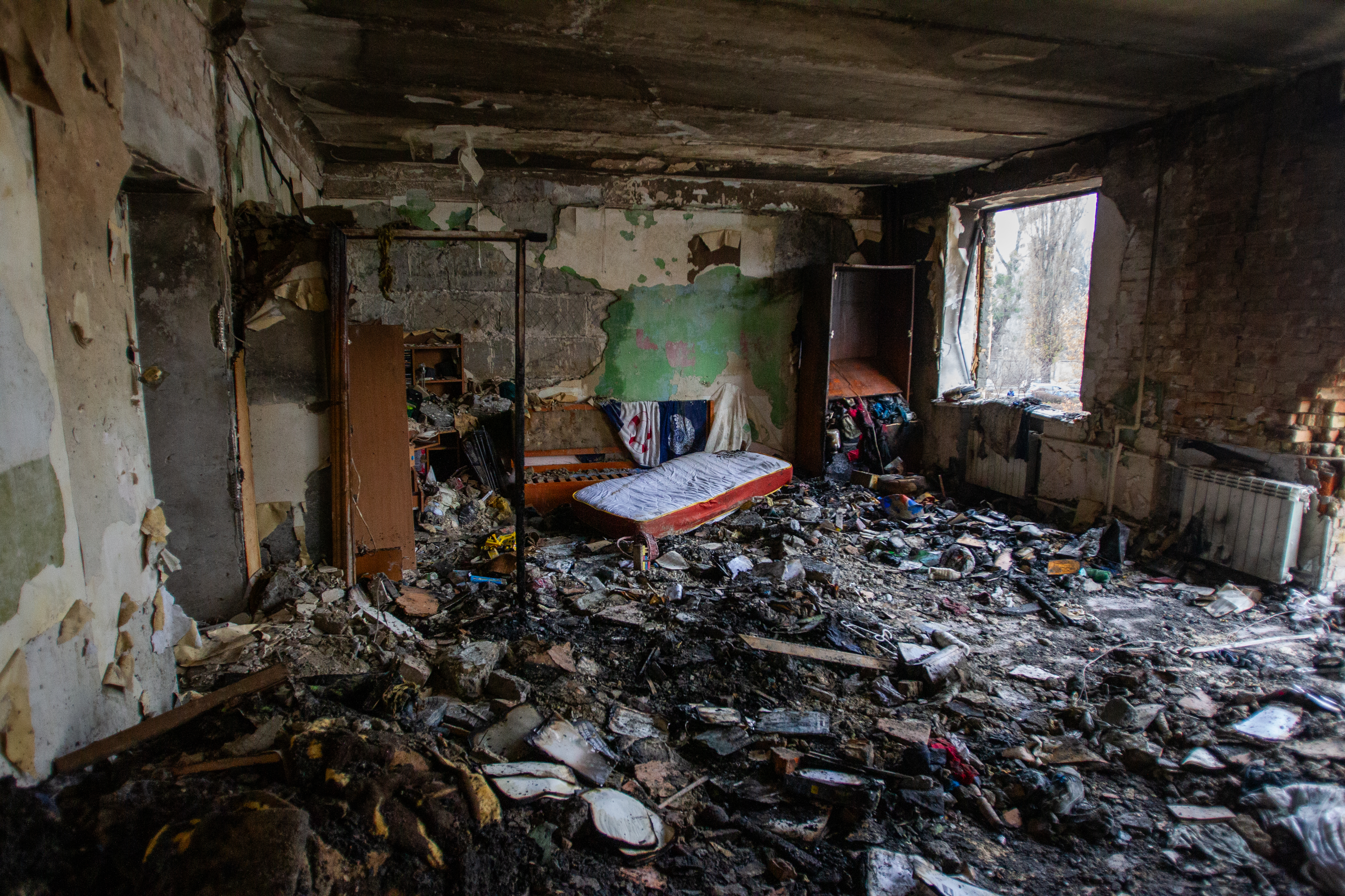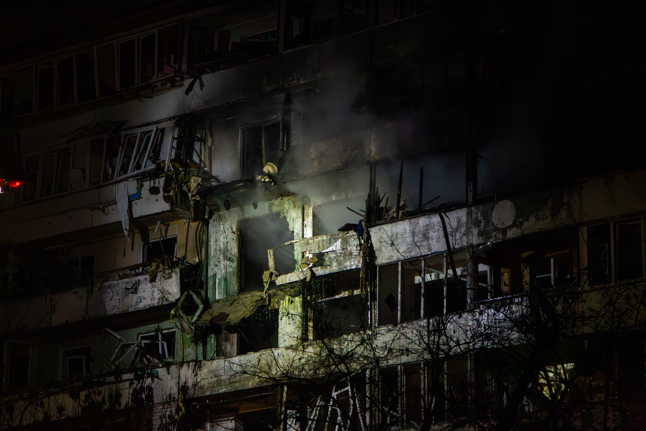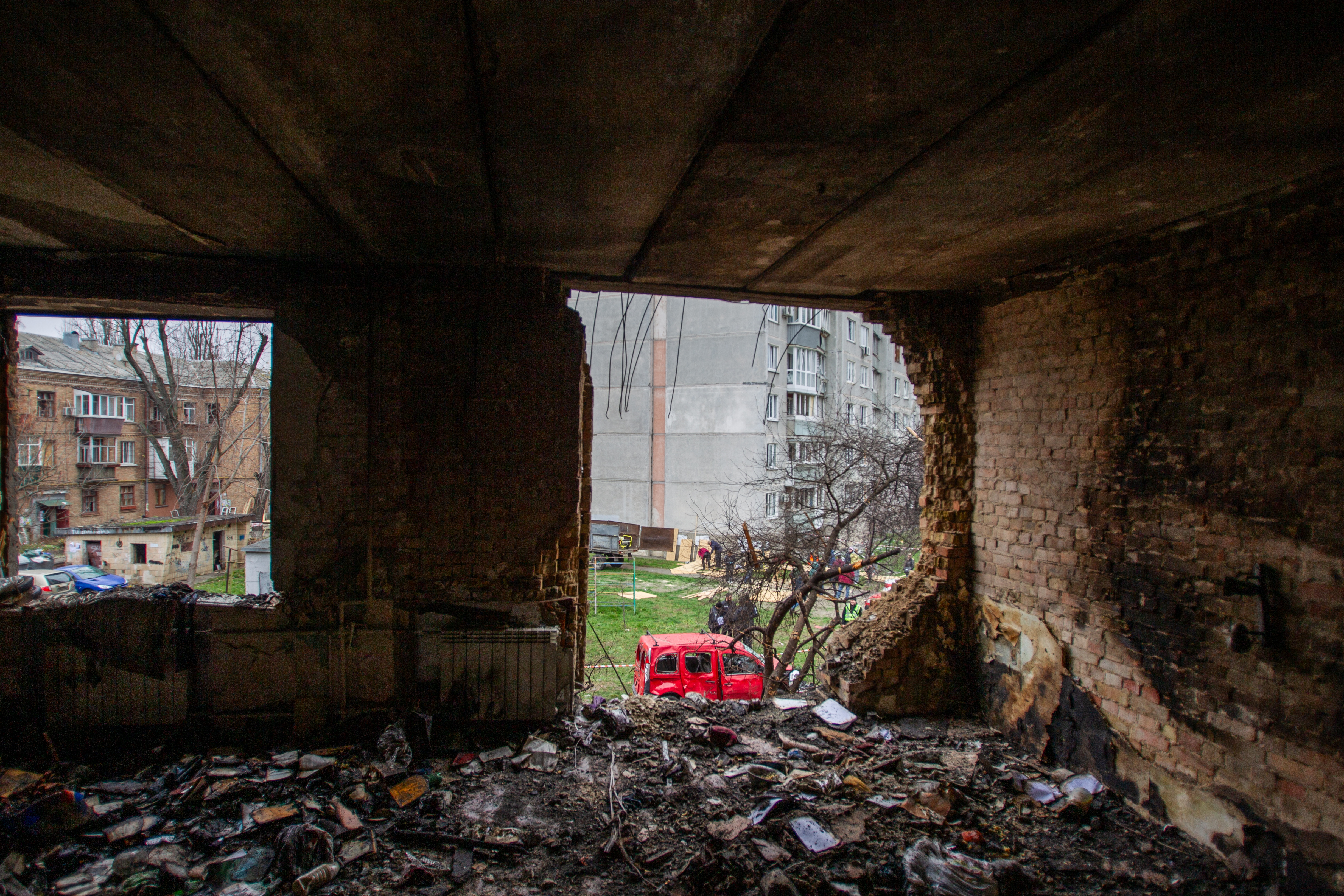 Destroyed residential building struck in a russian drone-and-missile attack on the Sviatoshynskyi district of Kyiv, November 29, 2025