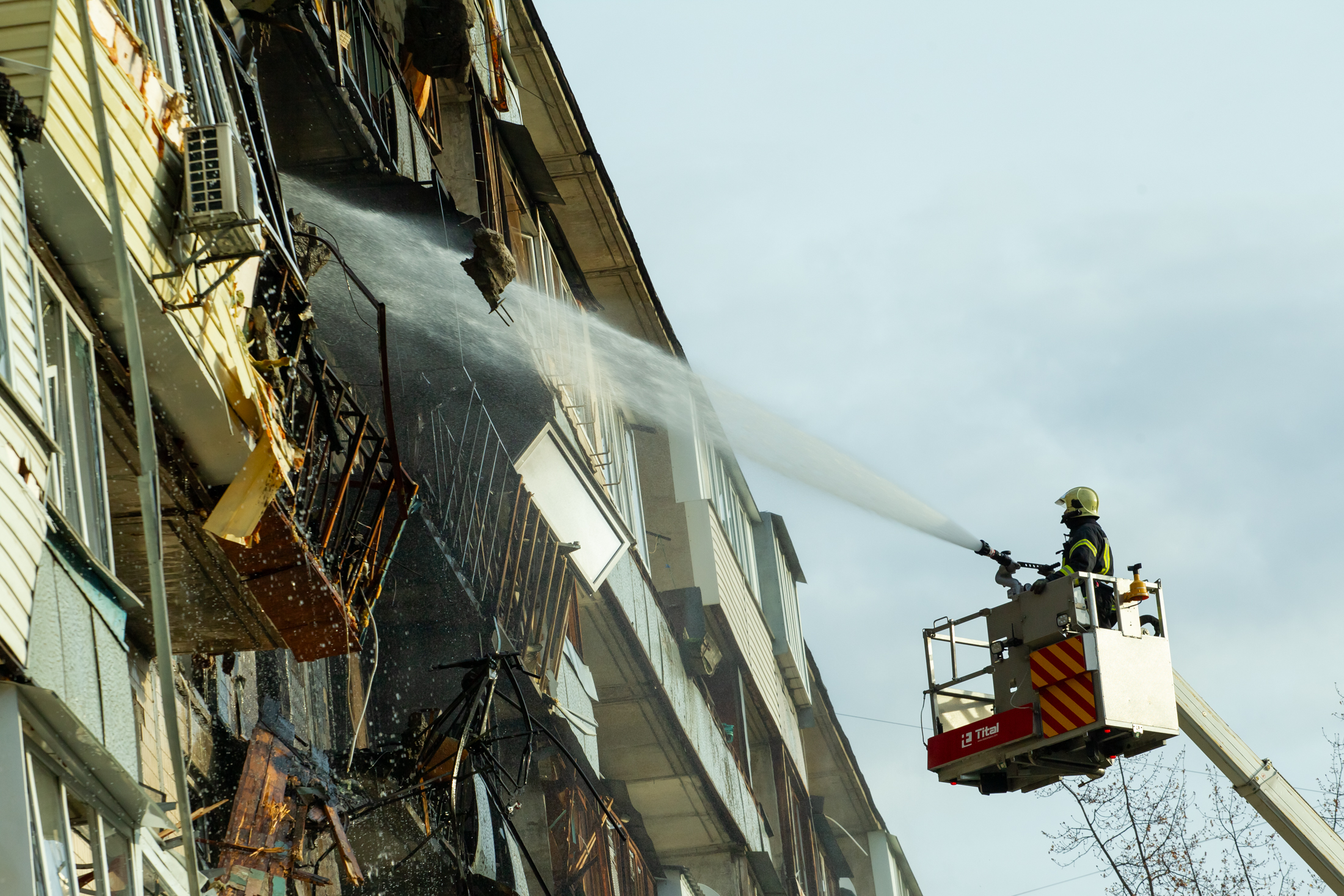 Rescue workers inside a residential building struck in a russian attack in Kyiv’s Desnianskyi district, November 14, 2025